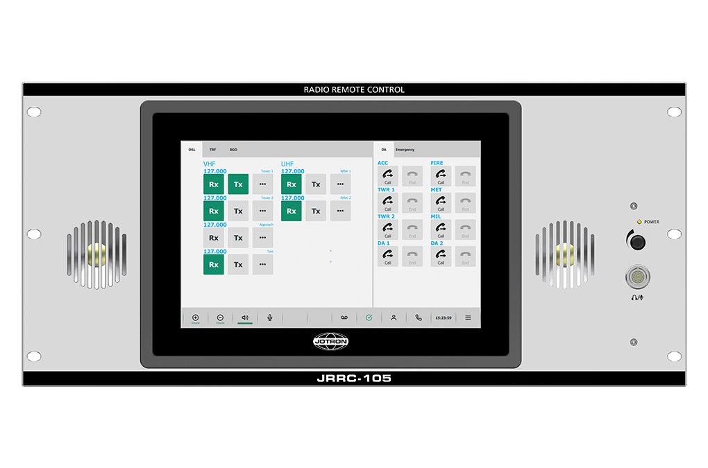 The RRC-7700 Radio Remote Controller system modules are a display unit (JDU), microphone interface (JMI), speakers (JSP) and handsets. Jotron has combined these modules into several different mounting arrangements, JRRC-105, JRRC-106, JRRC-107 and JRRC-108.